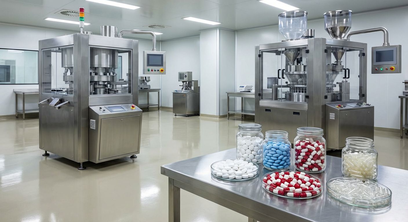 Las descripciones de maquinaria especializada se basan en información técnica pública actual de los principales proveedores de equipos farmacéuticos (p. ej., GEA, Bosch, FETTE, Glatt) y en las prácticas habituales de la industria. Consulte la información oficial para conocer los parámetros de rendimiento específicos de los equipos.